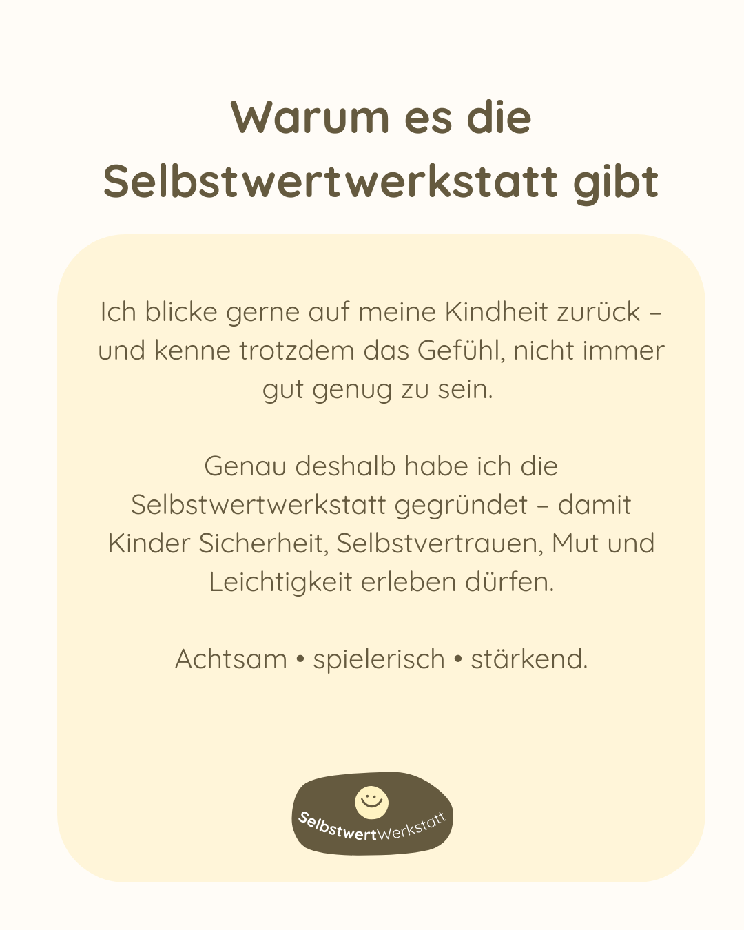 Das stärkt die Selbstwertwerkstatt.