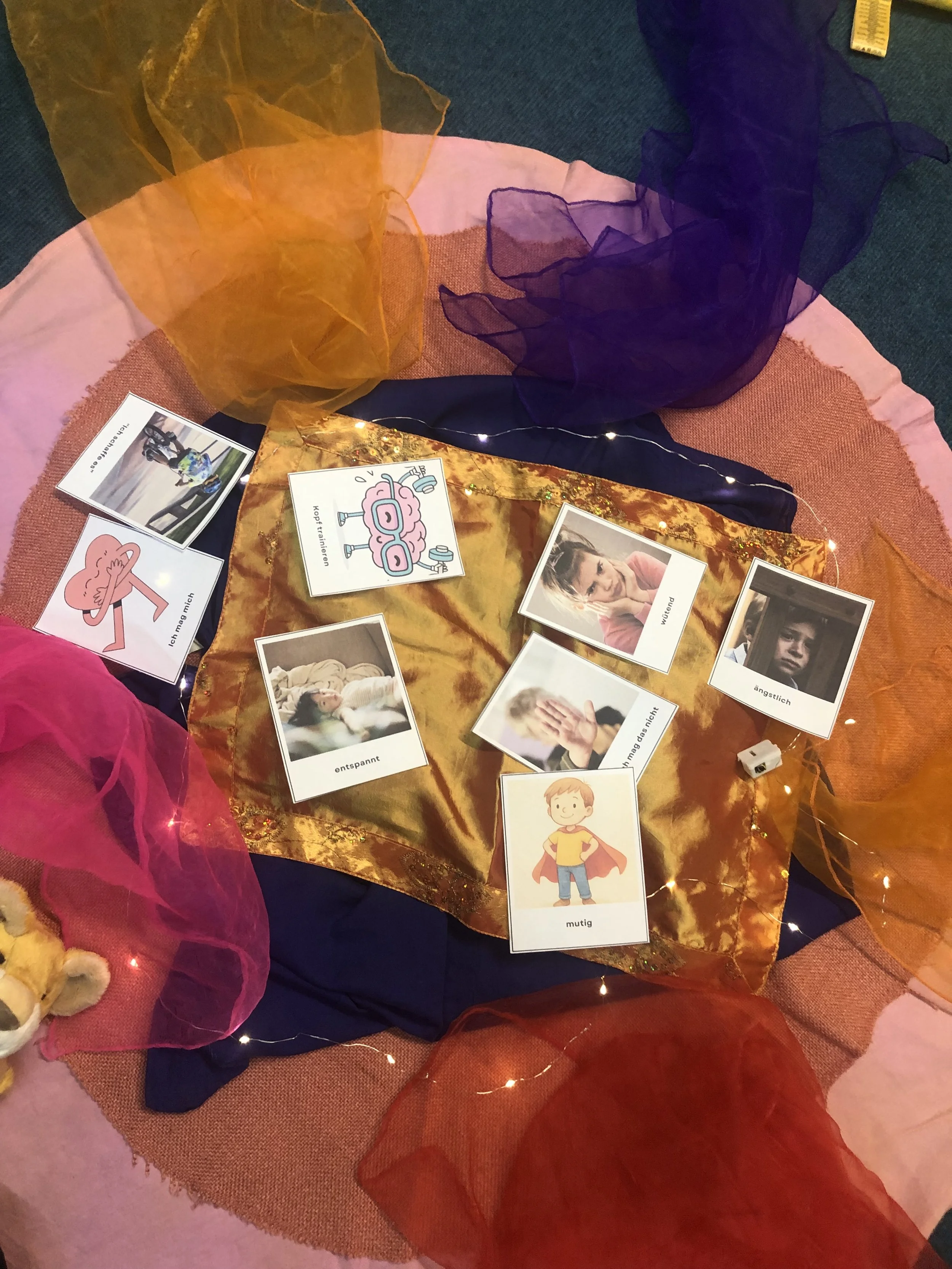 Ich nehme mir davor für ein Kennenlernen in der Gruppe Zeit, damit die Kinder wissen, wer jede Woche auf Besuch kommt. Wir starten mit einem ersten Mini-Ritual.